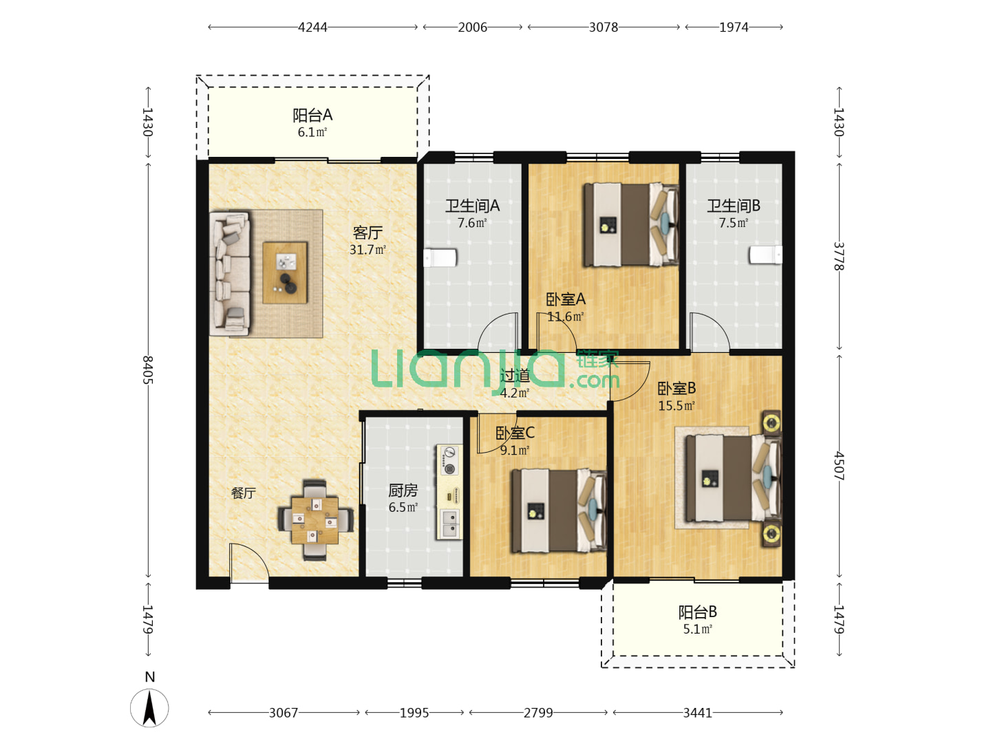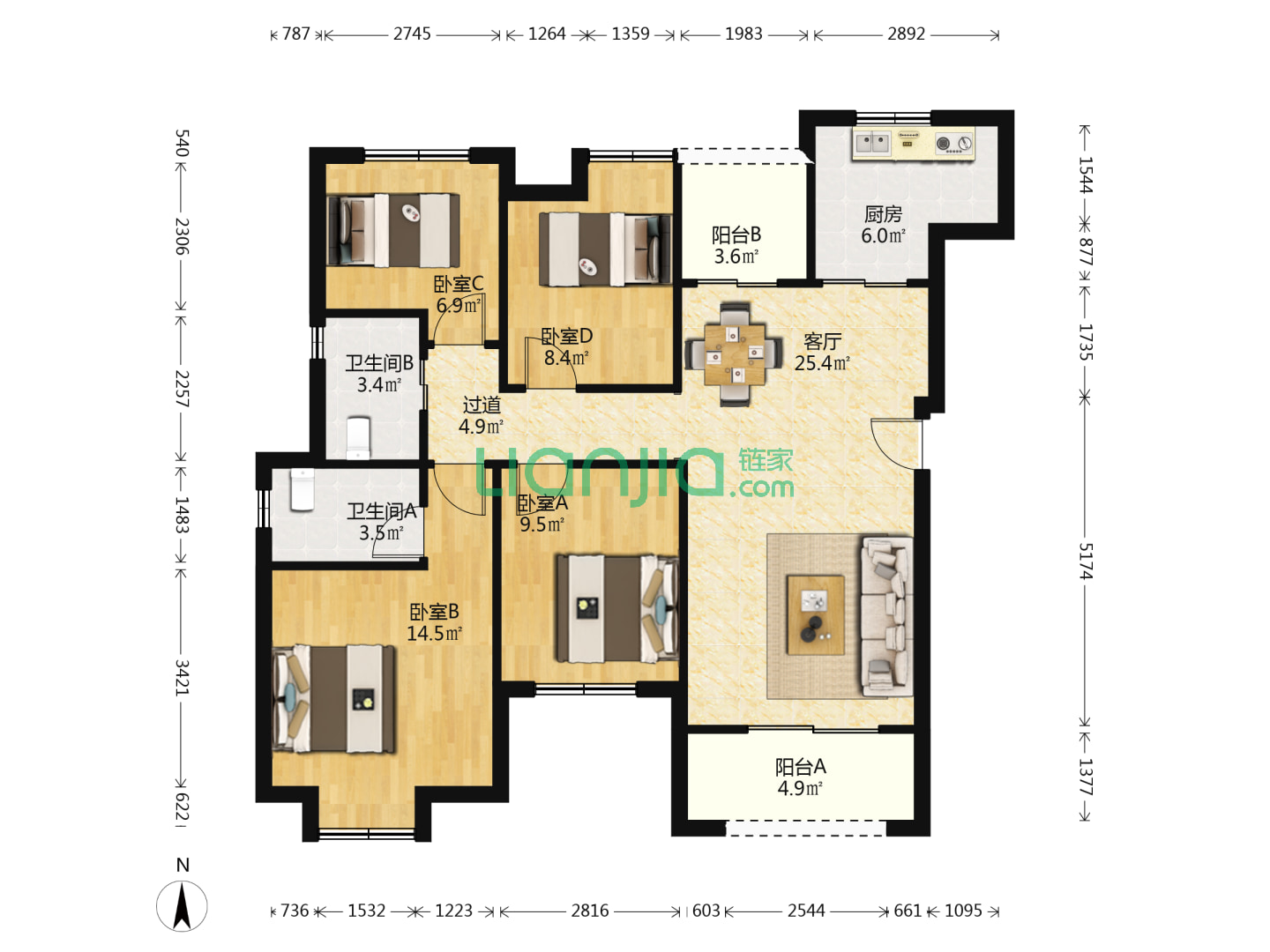 龙湖嘉屿城,5室1厅1卫 190㎡
